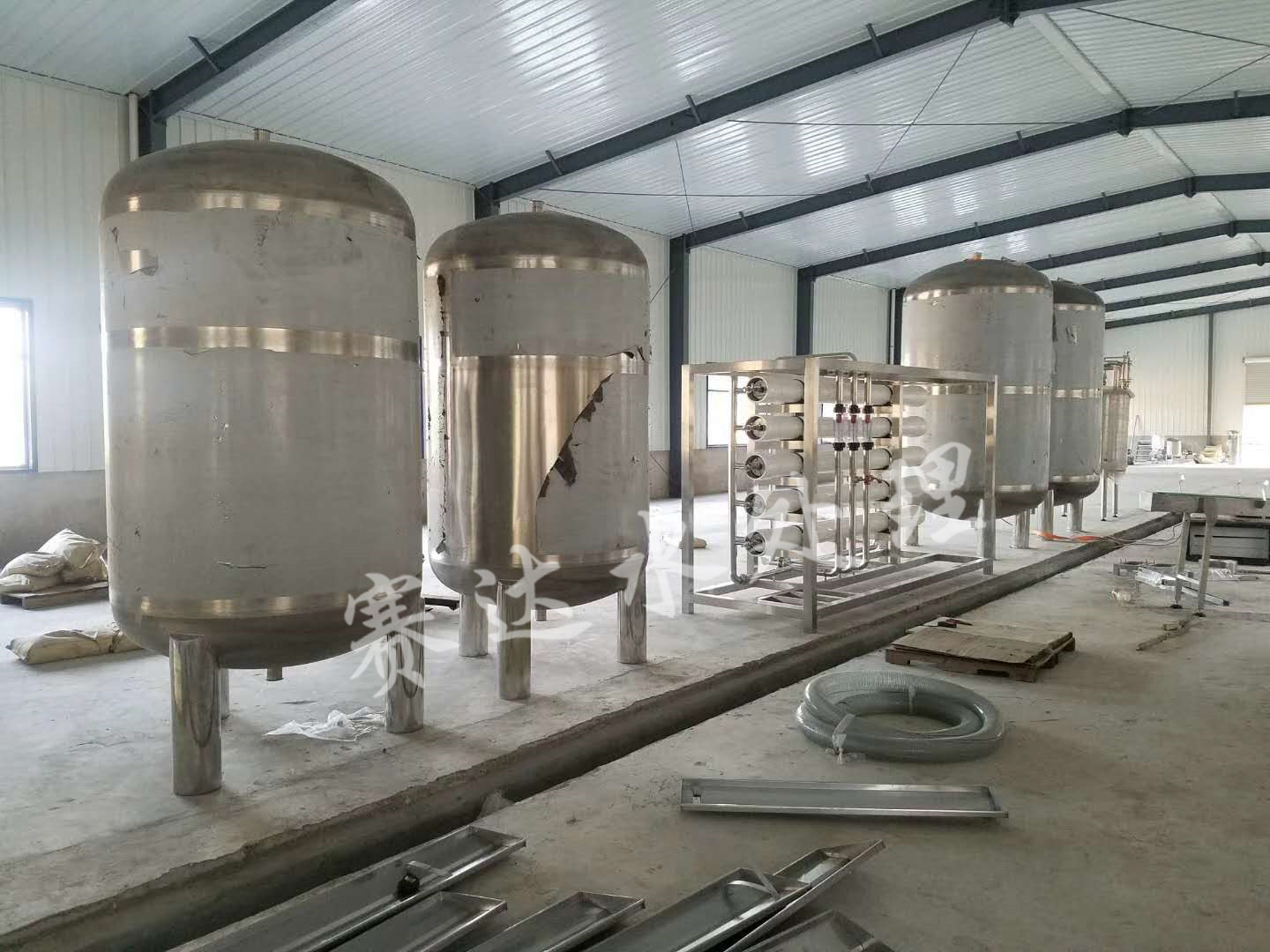 2、預(yù)處理系統(tǒng)一般包括原水泵、加藥裝置、石英砂過(guò)濾器、活性炭過(guò)濾器、精密過(guò)濾器等。其主要作用是降低原水的污染指數(shù)和余氯等其他雜質(zhì),達(dá)到反滲透的進(jìn)水要求。