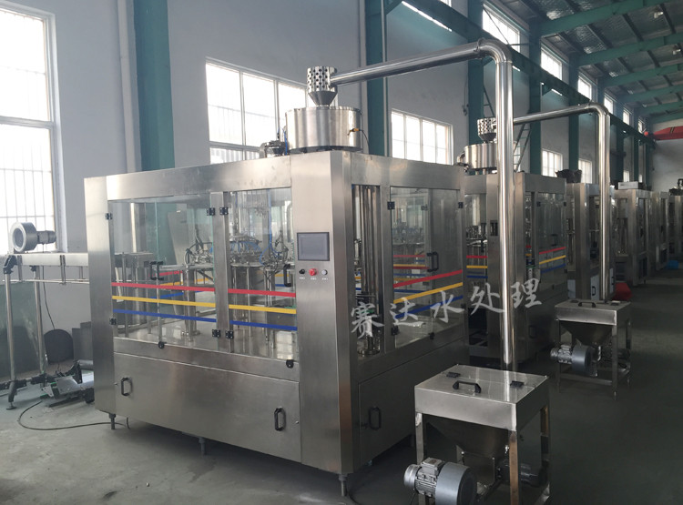 3、三合一瓶裝水灌裝生產(chǎn)線主要包括:全自動(dòng)或者半自動(dòng)吹瓶機(jī)、三合一灌裝機(jī)、自動(dòng)上蓋機(jī)、自動(dòng)套標(biāo)縮標(biāo)機(jī)或者自動(dòng)貼標(biāo)機(jī)、激光噴碼機(jī)、膜包機(jī)