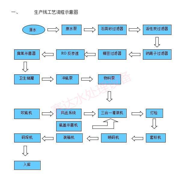 6000瓶/小時(shí)瓶裝水灌裝設(shè)備工藝流程: