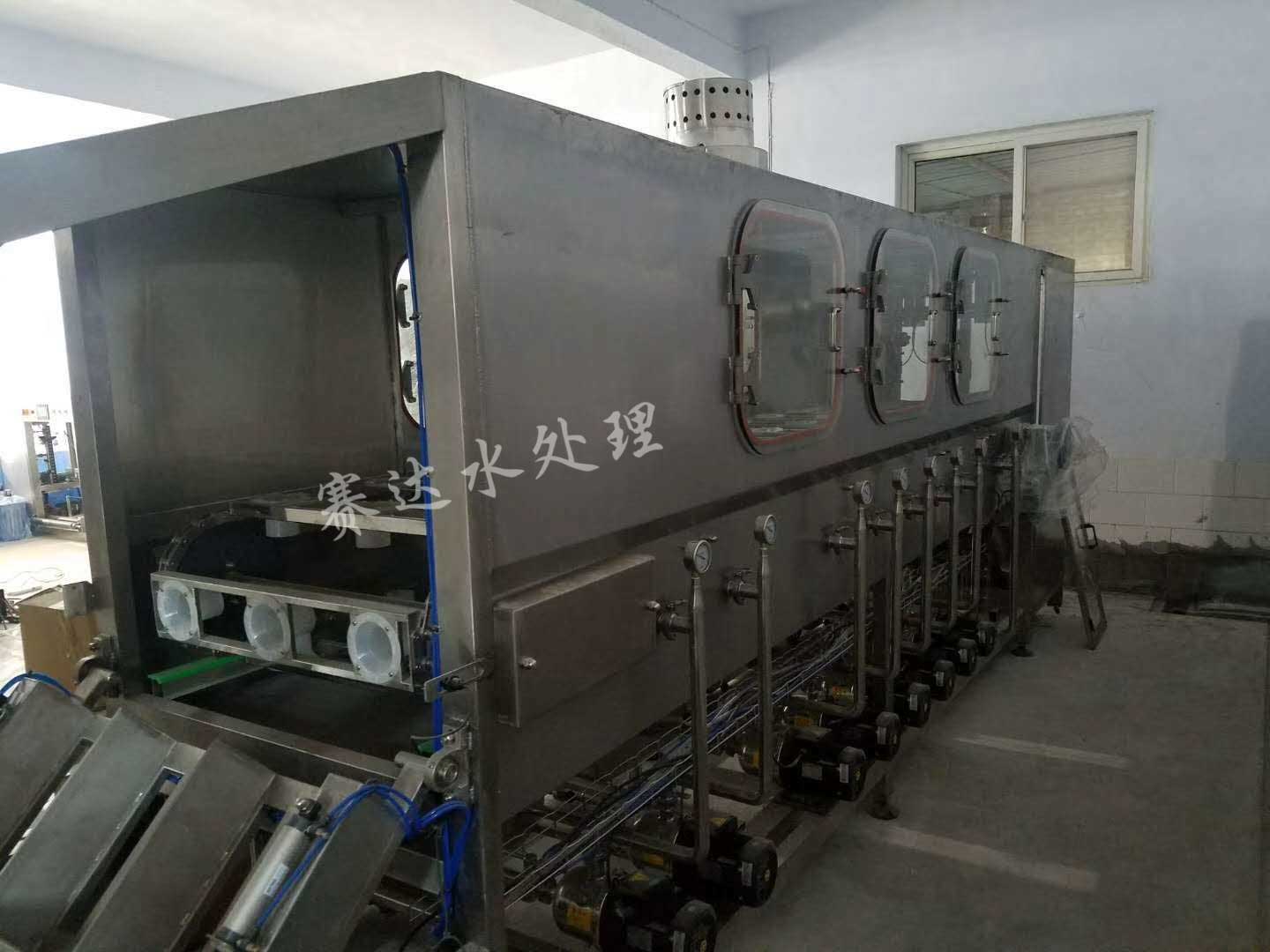桶裝水灌裝機集消毒、沖洗、灌裝、封蓋于一體, 沖洗工位共十二道:第一、二道堿洗,第三道滴干,第四、五回水沖洗,第六道瀝干,第六、八道消毒液清洗,第九道滴干,第十、十一到產(chǎn)品水沖洗,第十二道滴干(也可以根據(jù)用戶需求設(shè)定工序),完全滿足國家《飲料生產(chǎn)許可審查細則(2017版)》的要求.